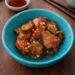 弾力のあるたことオクラに、キムチソースを和えて ピリ辛好きには堪らない旨辛味に仕上げてあります。 |